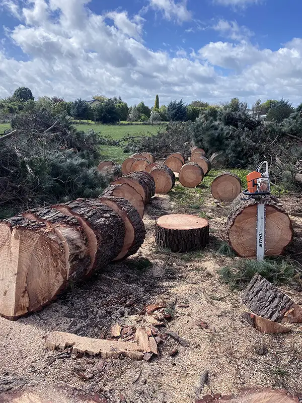 Sammo’s operation is well-equipped with a digger, large chipper, wood splitter, and truck—allowing them to tackle jobs of all sizes with ease. “From a light prune on your apple tree to removing 300 metres of shelterbelt, we are the men for the job”.
